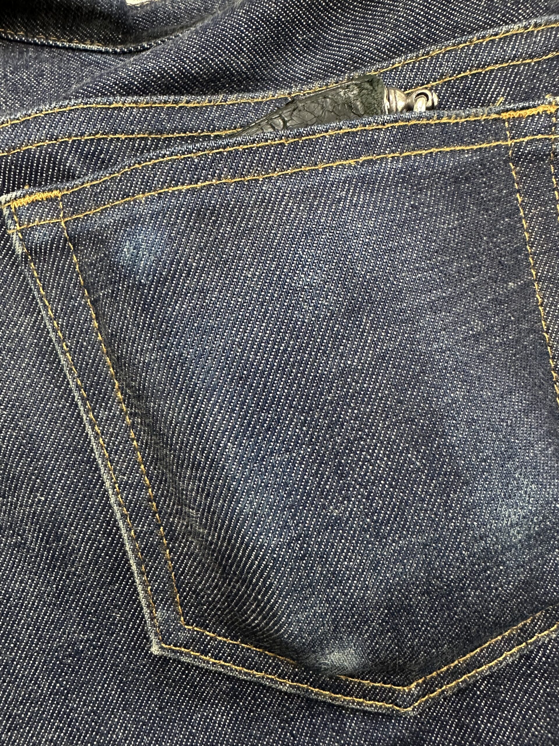 右ポケットは財布のコンチョがいつも通り当たっています。こちらについてはキャン〇マ周囲よりも落ちていますね。