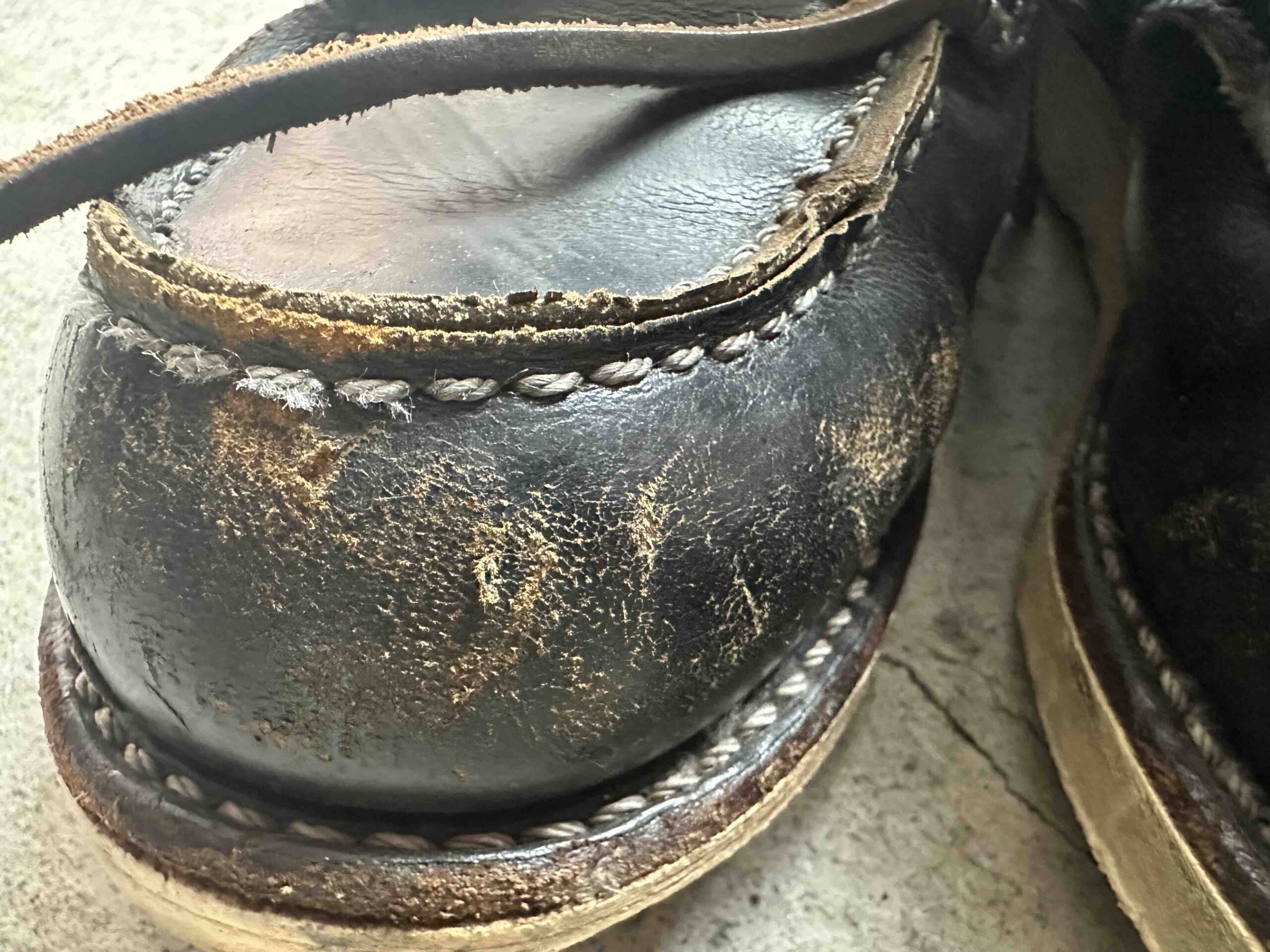 実際この様な履き方をしていたら、手入れしても手入れしてもボロけていきます(笑)