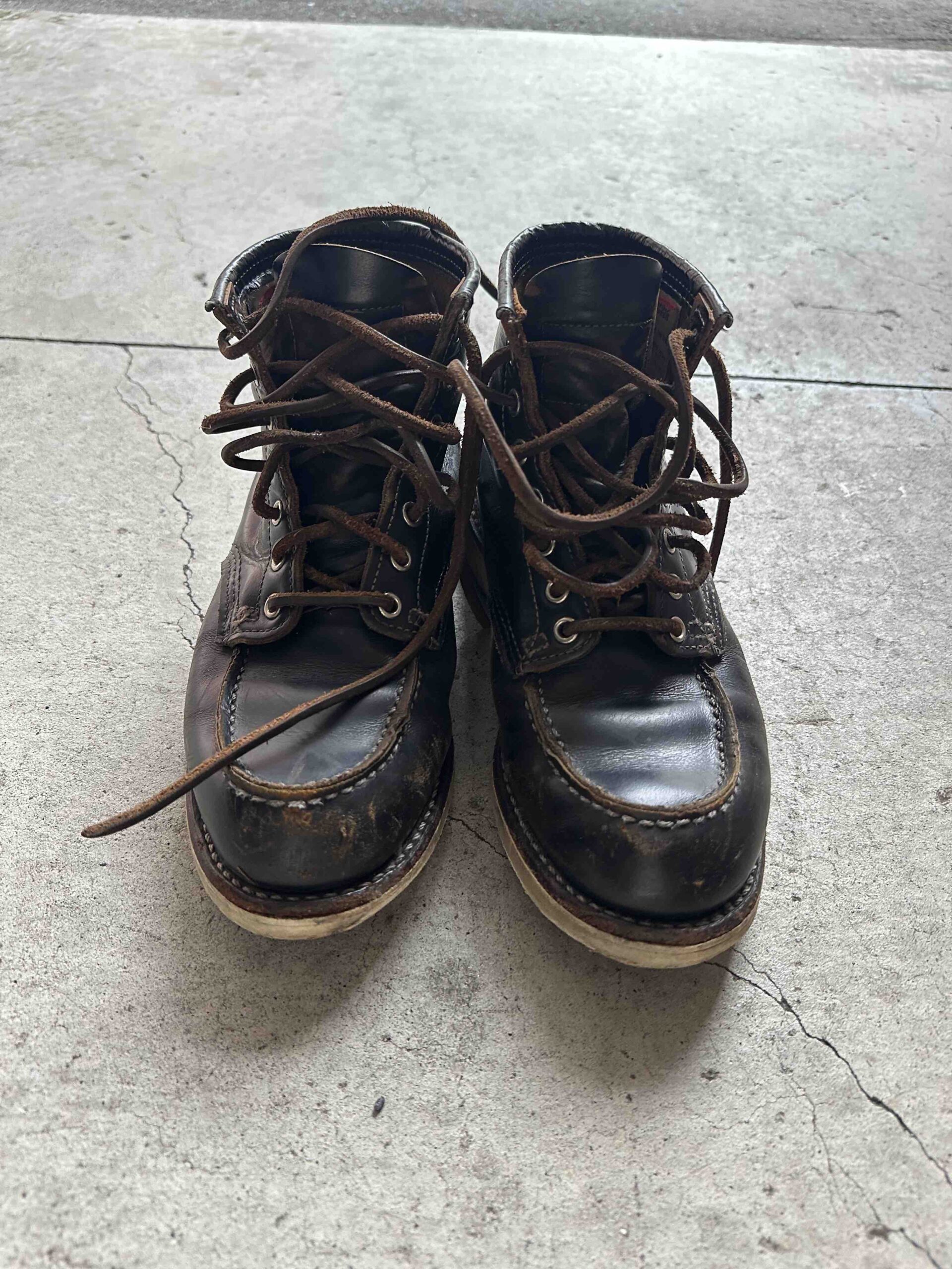 今回も紐は外さずそのままクリーム塗ってブラシしただけです。。元々雑なのにさらに雑に扱っていきます(^○^)